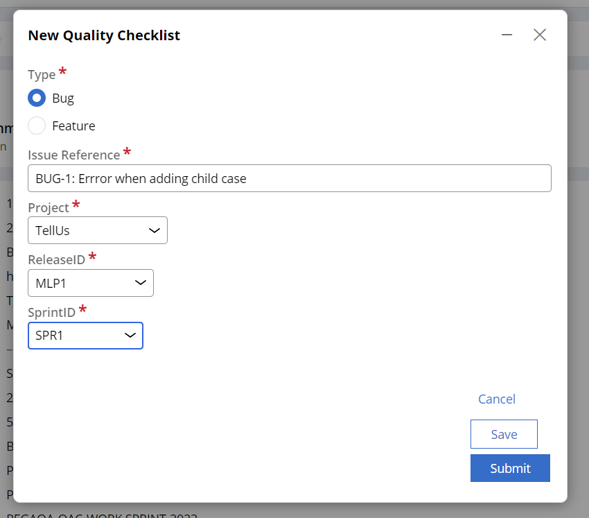 Application tracks formal documentation of quality measures taken during and after developing user story and before handing it over to testing team. Application allows to configure Quality checklist form (per project) and customizes approval workflow (who needs to approve checklist).