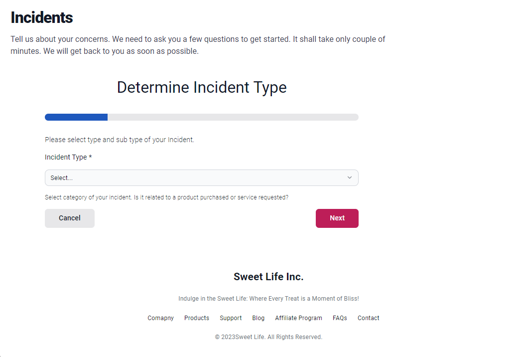 - Support page with ability to create Incident case that is processed by Pega